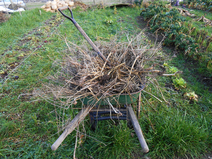 These late season beds missed out on all the cover cropping we did in October, so we’re covering them with mulch generated from the garden to protect the soil.
